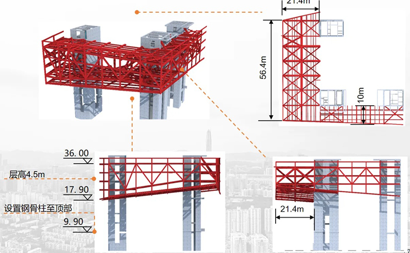 該項目位于深圳龍華區(qū),這座占地面積達31367平方米、建筑面積達83290平方米的文化地標,地上七層,地下兩層,建筑高度39.9米。整座建筑采用框架剪力墻結(jié)構體系,巧妙結(jié)合了8核心筒、巨型桁架、鋼管混凝土結(jié)構和型鋼混凝土結(jié)構,總用鋼量約1.12萬噸。