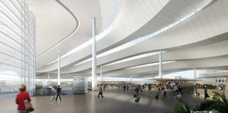 烏魯木齊天山國際機場的擴建工程是國家“十三五”“十四五”重點建設(shè)項目,總投資約520億元,規(guī)劃建設(shè)兩條4F級跑道、50萬平方米的T4航站樓、177個停機位及綜合交通中心等設(shè)施;航站區(qū)采用“主樓+三指廊”構(gòu)型,地上四層、地下一層,可容納年旅客吞吐量3500萬人次,貨郵吞吐量55萬噸